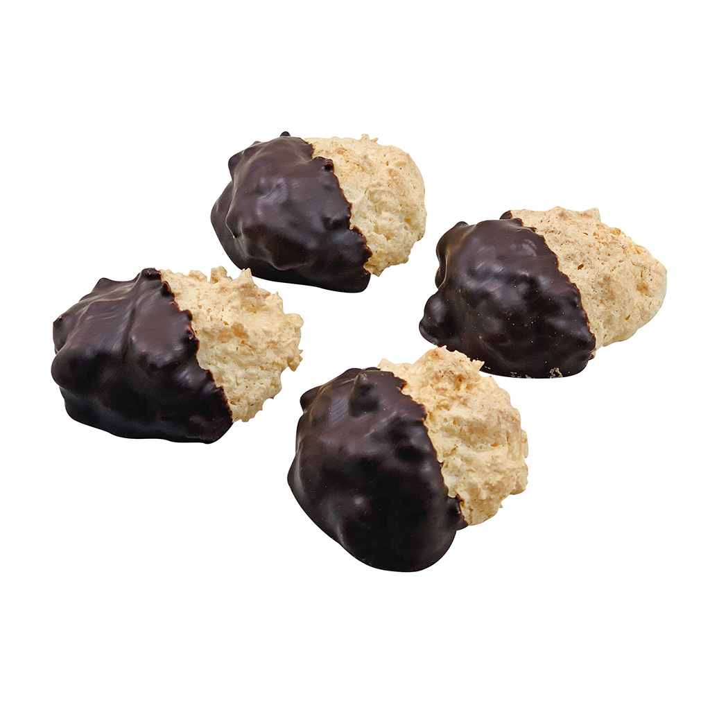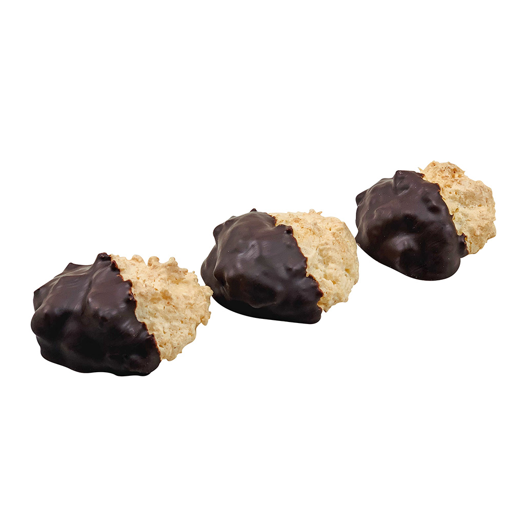 Jemné a tradičné kokosky vás dostanú svojou krehkosťou a zároveň aj šťavnatou chuťou. Tieto kokosky sú polomáčané v belgickej čokoláde a sú tak skvelé, že ich vyrábame ako bezlepkové a bezlaktózové pečivo, aby si ich mohol vychutnať naozaj každý.